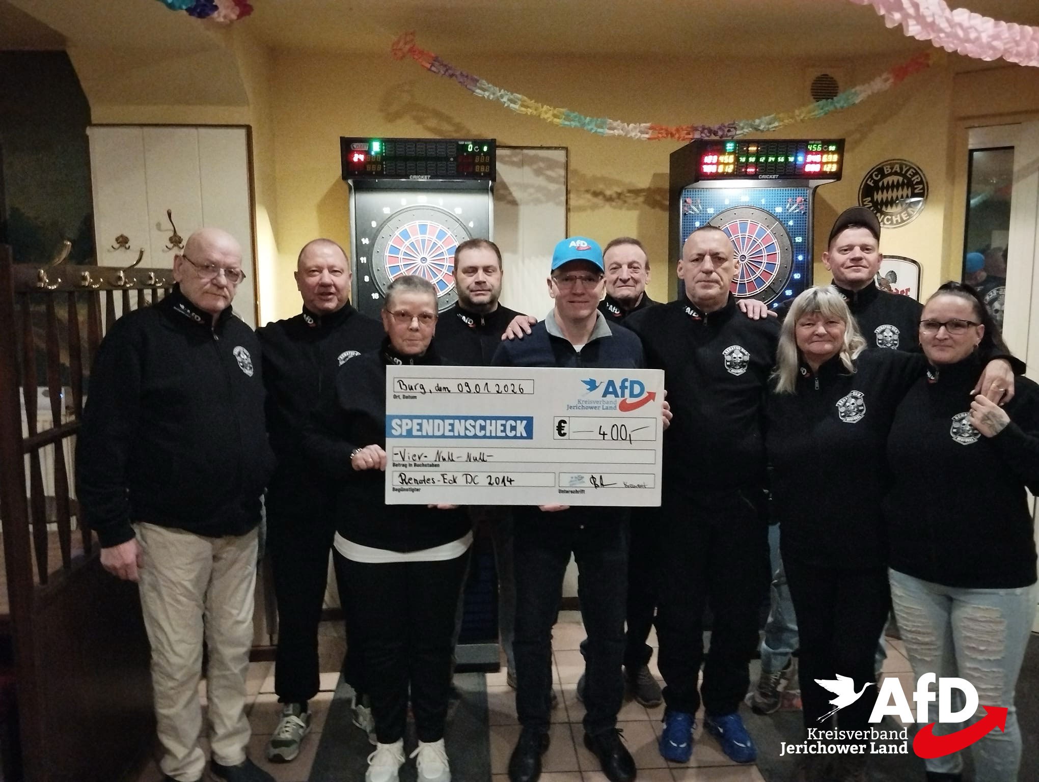 In der vergangenen Woche wurde durch den stellv. Kreisvorsitzenden und Mitglied des Landtages Jan Scharfenort, ein symbolischer Scheck in Höhe von 400 Euro an den Dart-Verein Burg übergeben. Die Spende soll den Verein bei der Förderung lokaler Gemeinschaftsaktivitäten unterstützen und unterstreicht unser Engagement für die Region.